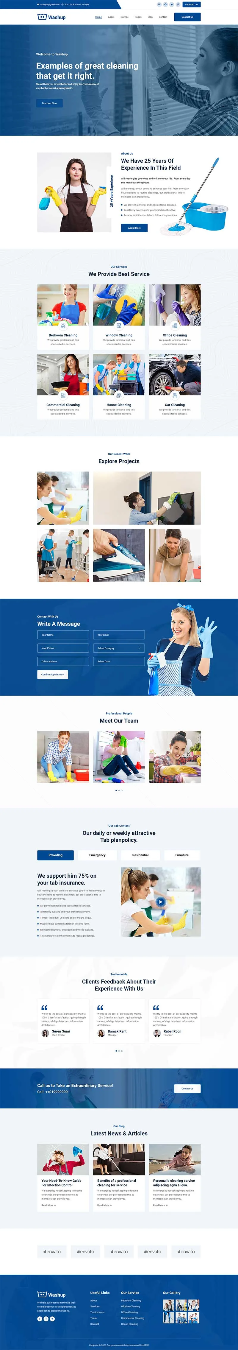 蓝色家政清洁服务公司静态HTML模板是一款专为家政清洁服务公司设计的网站模板。该模板采用蓝色为主色调,给人一种清新、专业的感觉。它提供了丰富的页面布局和组件,包括服务项目展示、团队介绍、客户评价等。通过使用这个模板,家政清洁服务公司可以快速建立一个具有吸引力和用户友好的网站,展示公司的专业服务和优势。该模板基于静态HTML构建,加载速度快,适用于各种设备和浏览器。无论是新成立的公司还是想要更新网站的老牌公司,都可以使用这个蓝色家政清洁服务公司静态HTML模板。